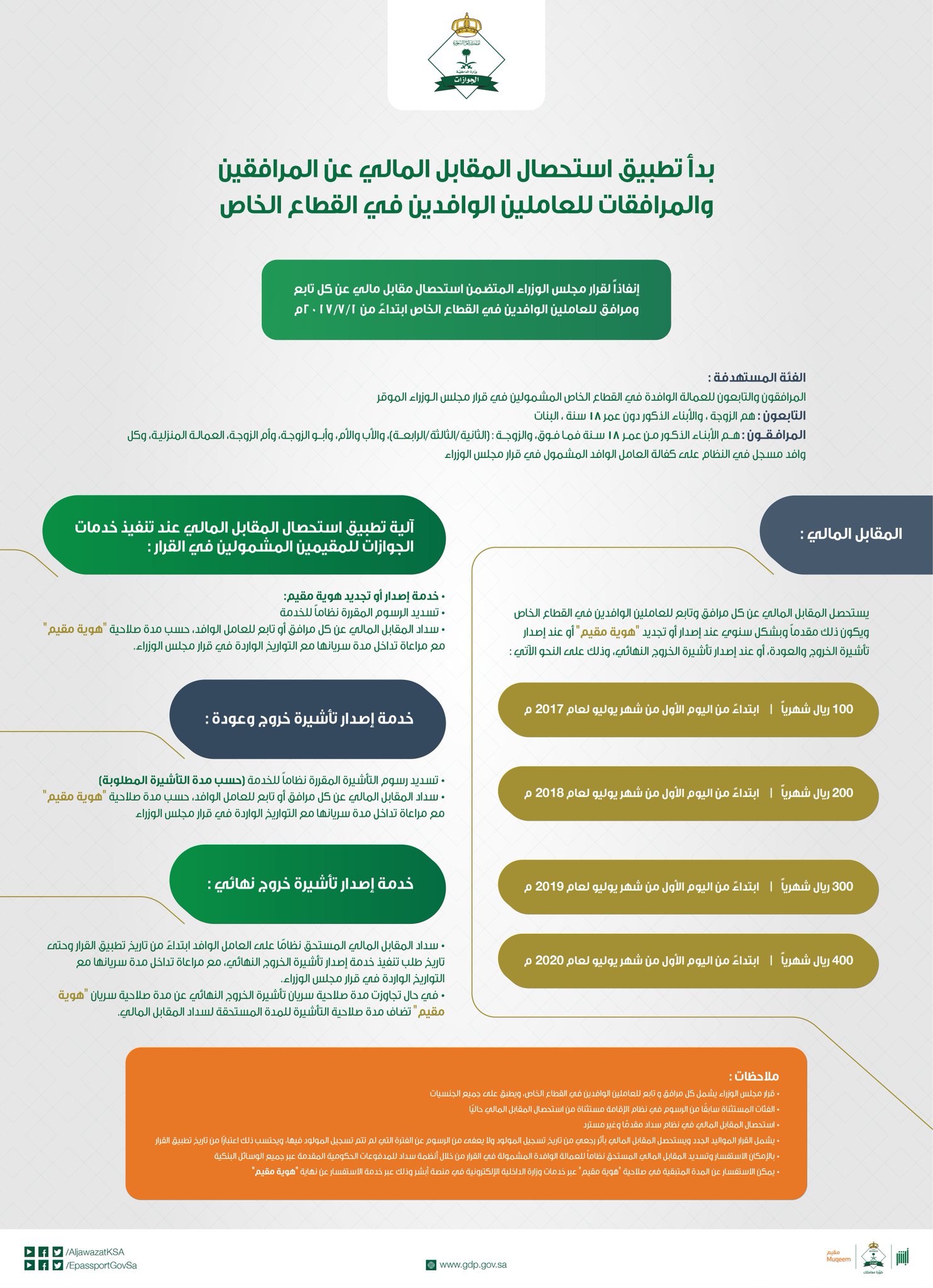 الجوازات السعودية A Twitter تعر ف على آلية تطبيق استحصال المقابل المالي للمرافقين والتابعين للعاملين الوافدين بالقطاع الخاص