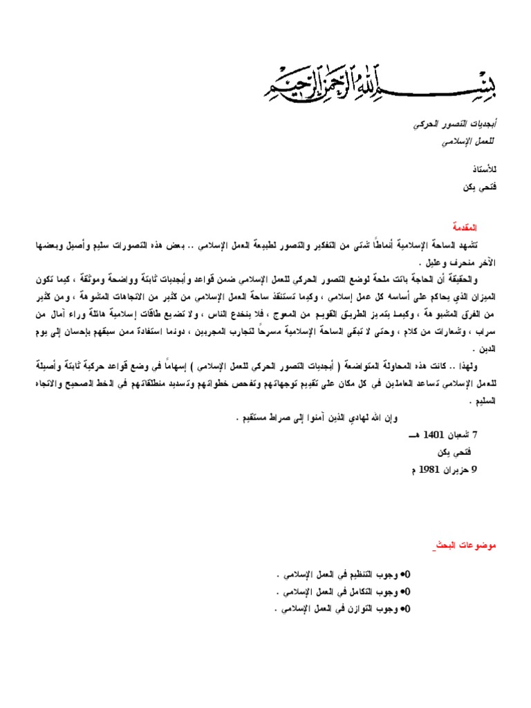 أبجديات التصور الحركي للعمل الاسلامي فتحي يكن Pdf Google Drive