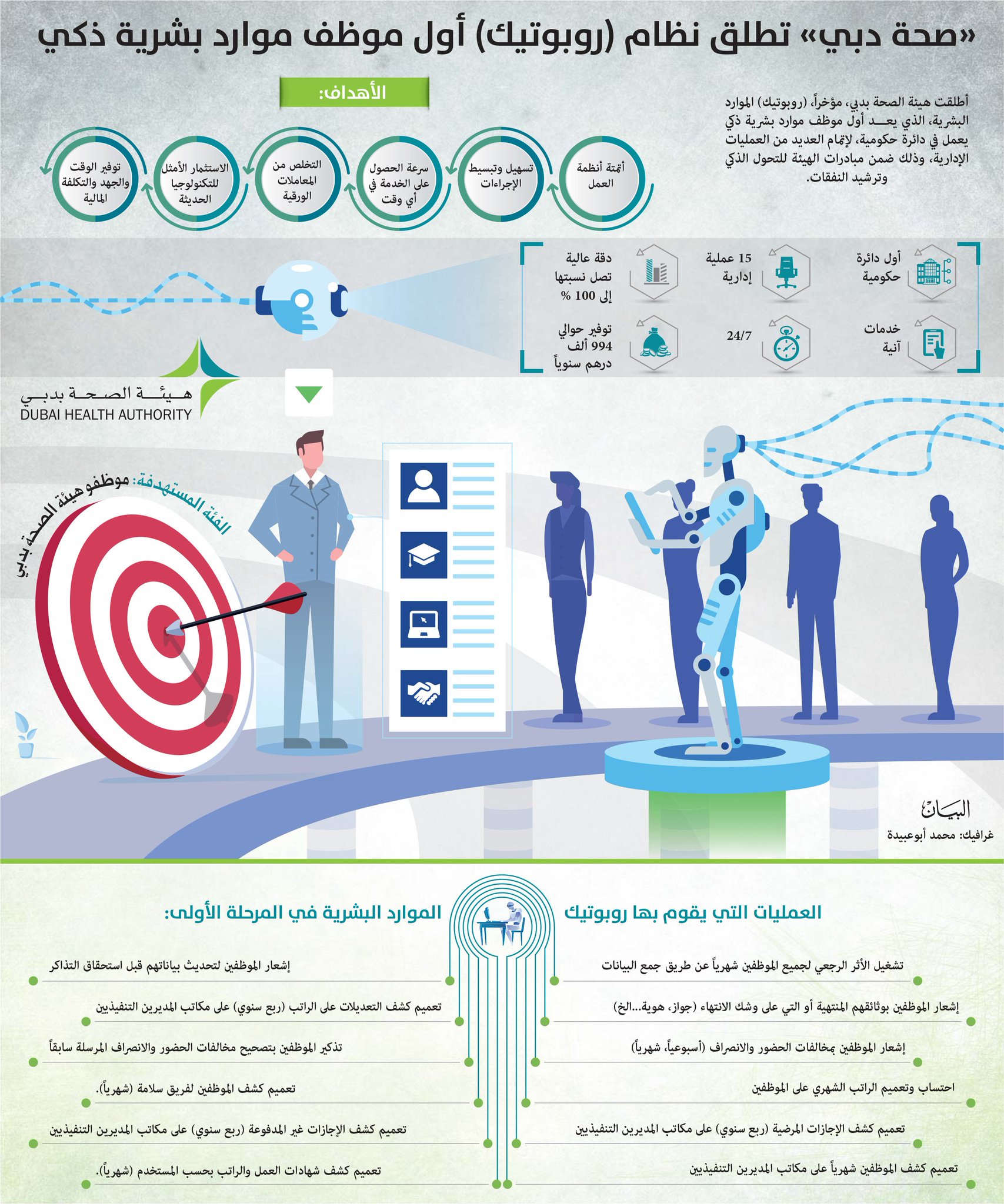 هيئة الصحة بدبي A Twitter انفوغرافيك صحة دبي تطلق نظام روبوتيك أول موظف موارد بشرية ذكي البيان الصحي