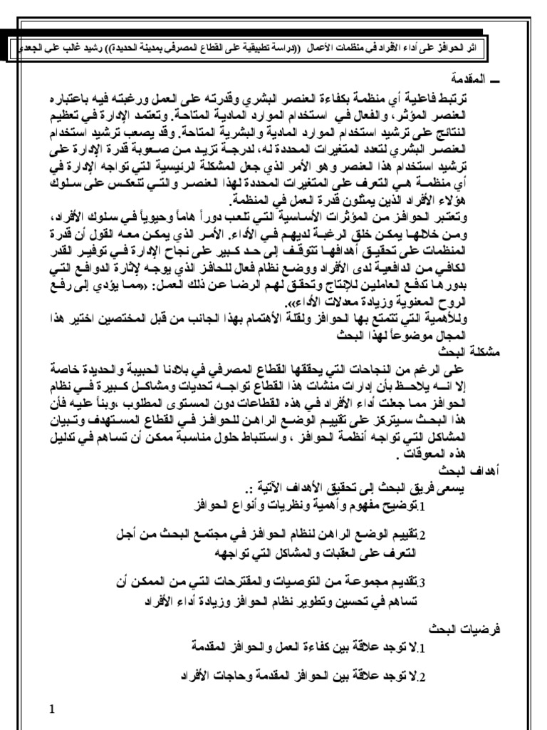 أثر الحوافز على العمل في البنوك التجارية مراجع