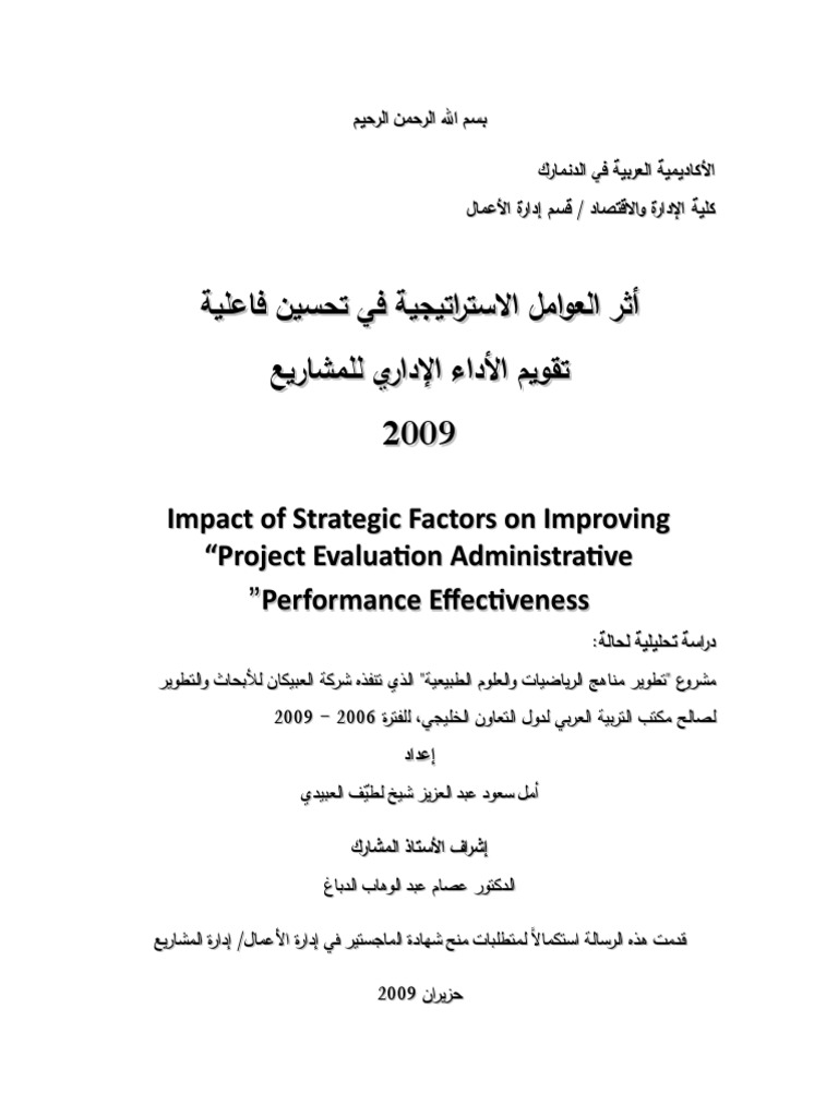 أثر العوامل الاستراتيجية في تحسين فاعلية تقويم الأداء الإداري للمشاريع Doc