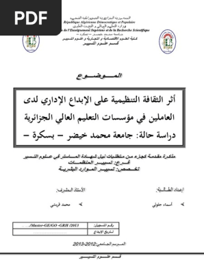 أثر الثقافة التنظيمية على الإبداع الإداري لدى العاملين في مؤسسات التعليم العالي الجزائرية Pdf