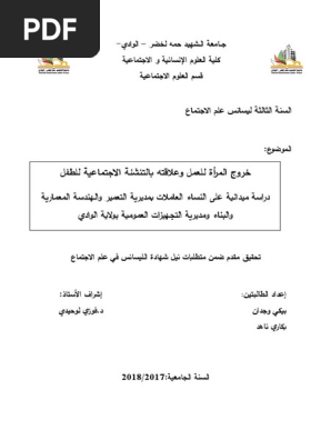 تقرير حول خروج المرأة للعمل وعلاقته بالتنشئة الاجتماعية للطفل للطالبة بيكي وجدان