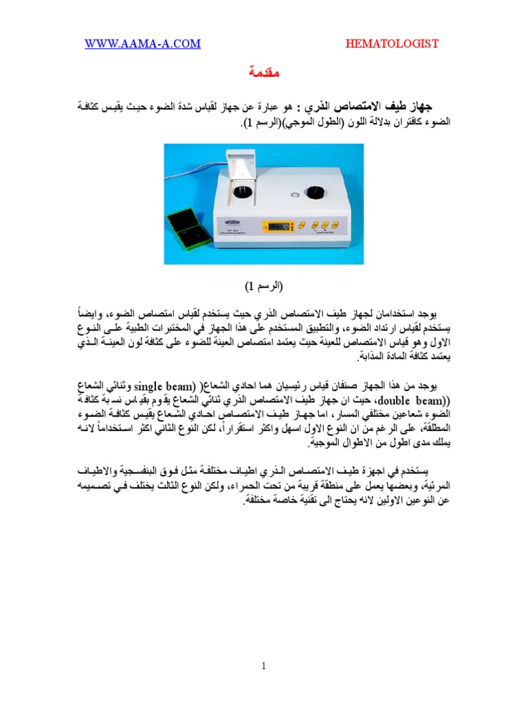 ﺟﻬﺎﺯ ﺍﻟﻤﻄﻴﺎﻑ ﺍﻟﻀﻮﺋﻲ Spectrophotometer علم الكيمياء Chemistry Facebook