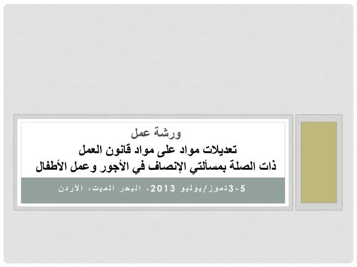 Ppt ورشة عمل تعديلات مواد على مواد قانون العمل ذات الصلة بمسألتي الإنصاف في الأجور وعمل الأطفال Powerpoint Presentation Id 6351960