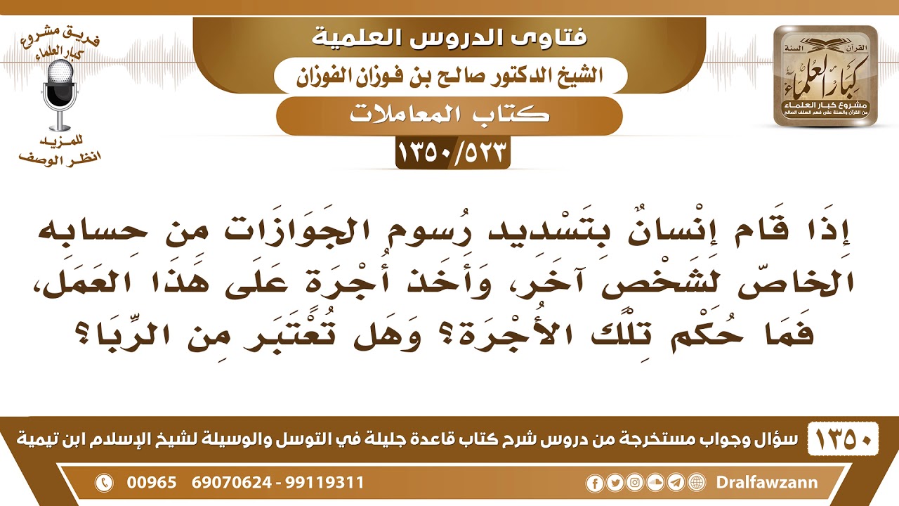 523 1350 إذا قام إنسان بتسديد رسوم الجوازات من حسابه الخاص لشخص آخر ما حكم أخذ الأجرة على ذلك Youtube