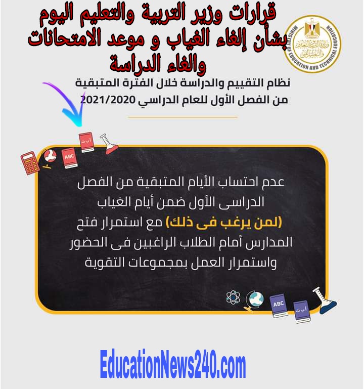 قرارات وزير التربية والتعليم اليوم بشأن إلغاء الغياب و موعد الامتحانات والغاء العام الدراسي