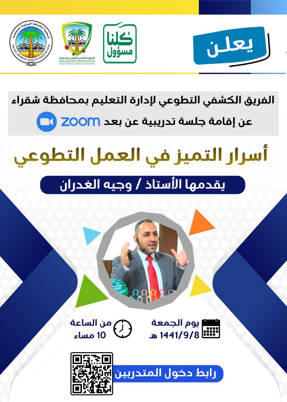 صحيفة شقراء V Twitter تعر ف على أسرار التميز في العمل التطوعي للمدرب الأستاذ وجيه الغدران ضمن برامج الفريق الكشفي التطوعي بـ تعليم شقراء اليوم الجمعة ١٤٤١ ٩ ٨هـ الوقت ١٠م للدخول مباشرة عبر الرابط Https T Co Qpk7pixwoe