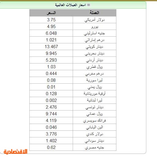 أسعار العملات العالمية مقابل الريال صحيفة الاقتصادية