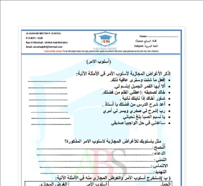 ورقة عمل أسلوب الأمر لمادة اللغة العربية للصف السابع مع الإجابات الفصل الثاني منتديات صقر الجنوب