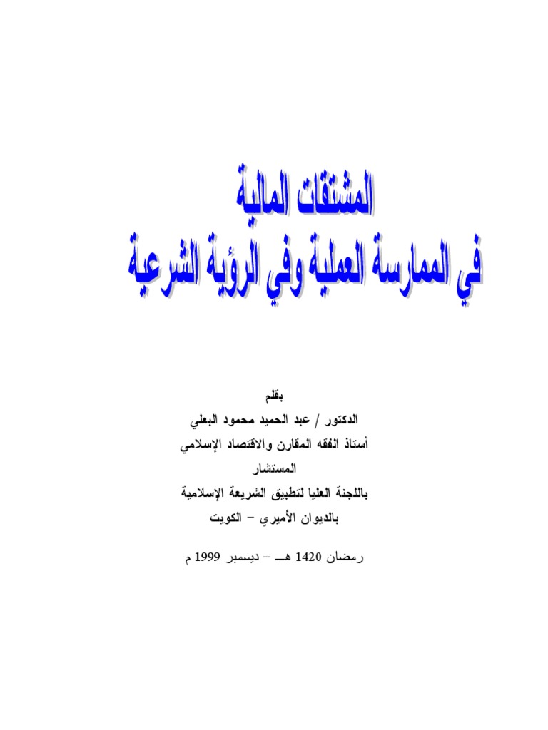 المشتقات المالية في الممارسة العملية وفي الرؤية الشرعية