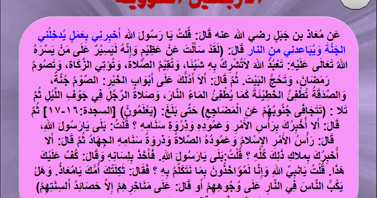 ما صح من الأربعين النووية أخبرني بعمل يدخلني الجنة ويباعدني من النار موقع البطاقة الدعوي