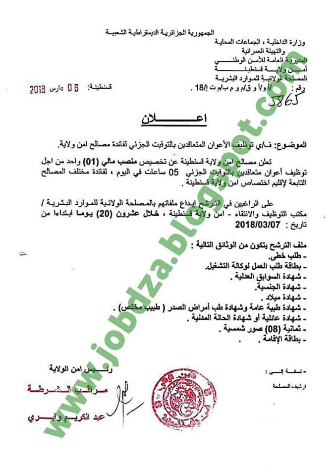 إعلان توظيف في أمن ولاية قسنطينة المدونـــة الجزائريـــــة للتوظيف