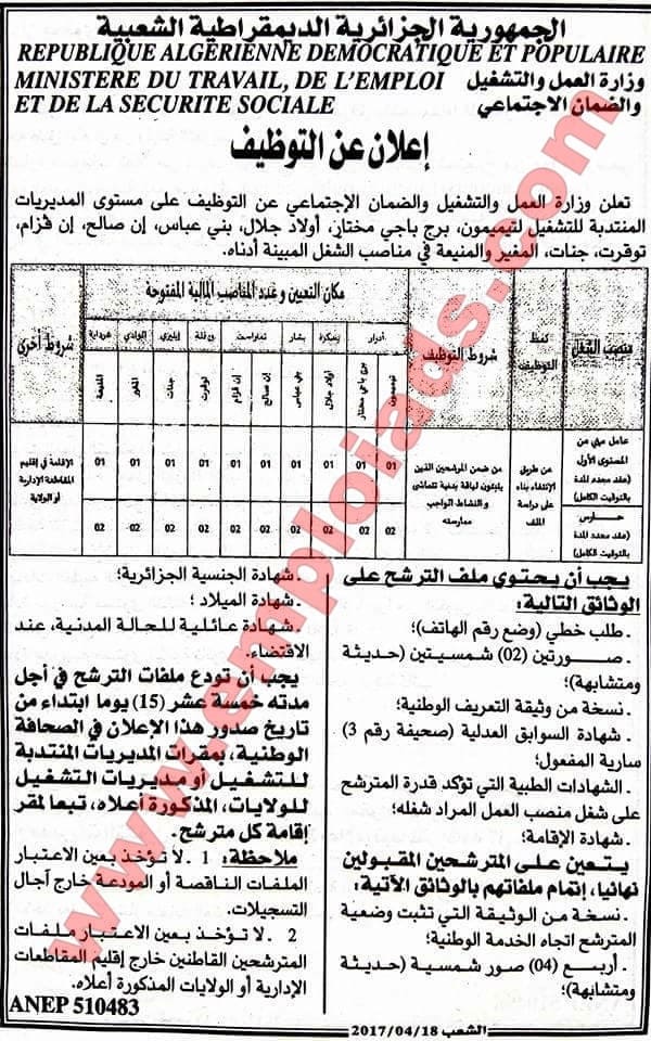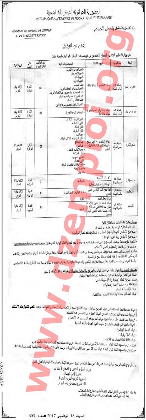 إعلان توظيف في وزارة العمل والتشغيل والضمان الاجتماعي الجزائر نوفمبر 2017 مدونة التوظيف في الجزائر Dzemploi