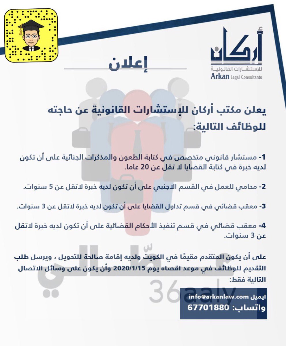 عط الي Ar Twitter اعلان توظيف في مركز اركان للاستشارات القانونية مكتب أركان للاستشارات القانونية يعلن حاجته للوظائف التالية ايميل التقديم Info Arkanlaw Com رقم التواصل على الوتساب 67701880 عطالي Https T Co Md9tywvced