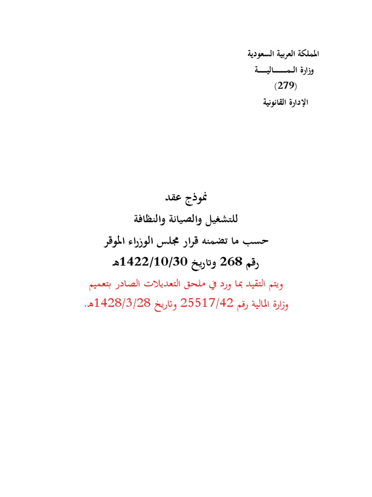 نموذج عقد التشغيل والصيانة والنظافة