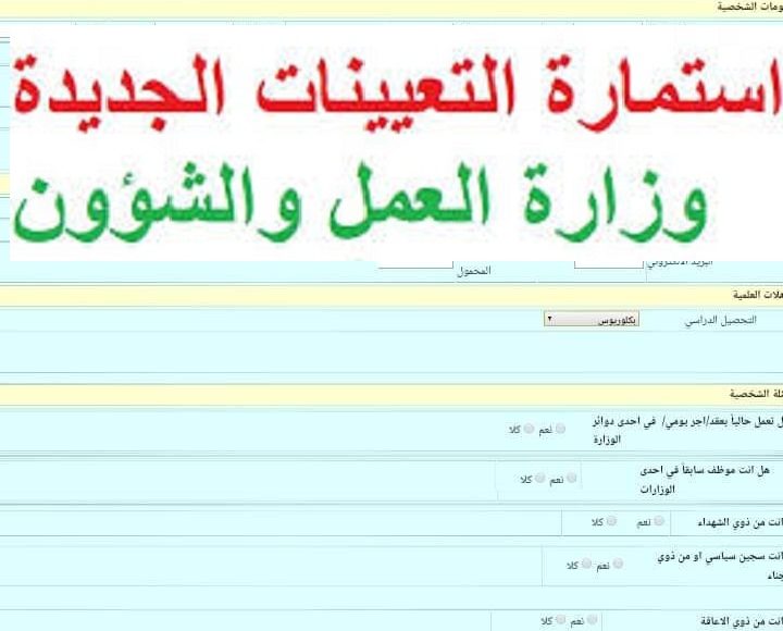 استمارة تقديم طلب فرصة عمل او قرض في وزارة العمل والشؤون الاجتماعية موقع تعيينات العراق