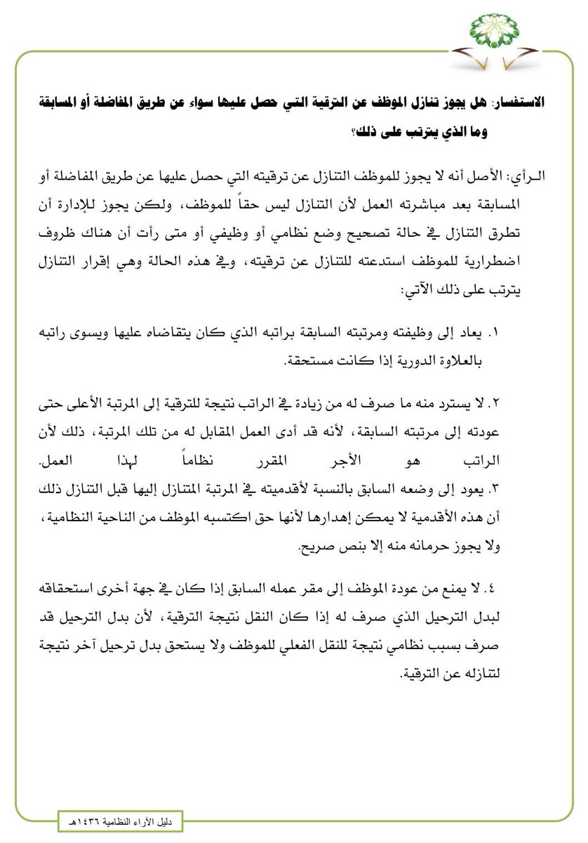 قـرار Qarar On Twitter عليكم السلام يجوز التنازل عن الترقية في حالة موافقة الجهة والإحتفاظ بالأقدمية في المرتبة المتنازل عنها ويمكن الترشح للترقية في المحضر القادم لكن يجب التأكد من بقاء الوظيفة السابقة