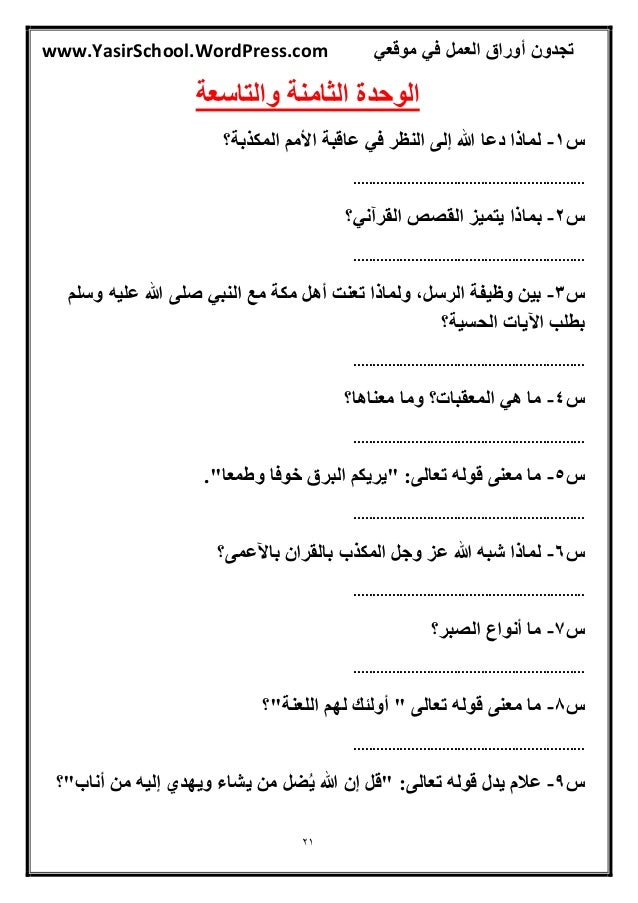 اوراق عمل مادة التفسير 2 مقررات الفصل الدراسي الثاني