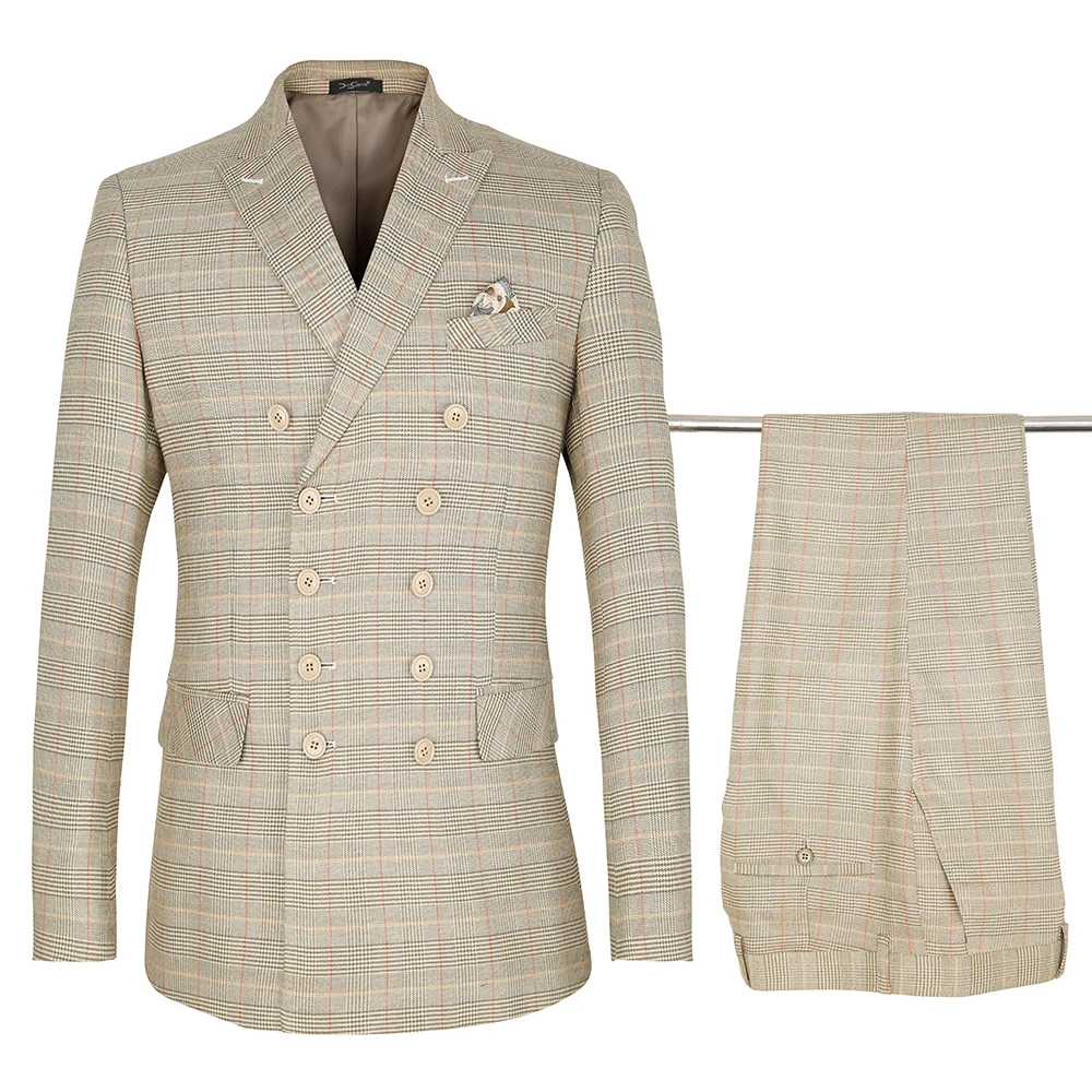 2019 الرجال الدعاوى الكلاسيكية الكاكي منقوشة الأقمشة الرجال الدعاوى الزفاف العريس سهرة بدلة عمل رسمية مزدوجة الصدر في بدلة من ملابس الرجال على Www Unohama Club Store
