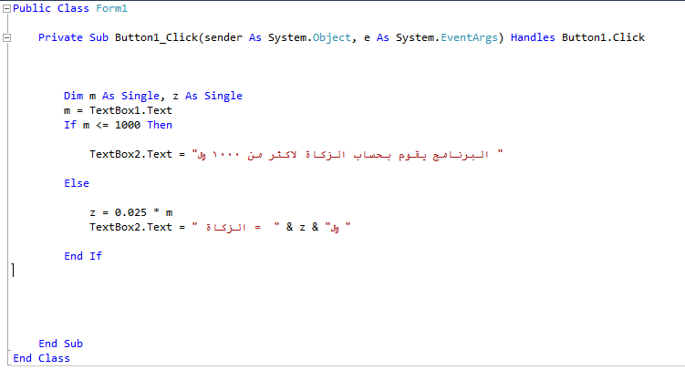 حاسب 1 التدريب السابع تطبيق برنامج حساب الزكاة فيجوال بيسك نت 2010