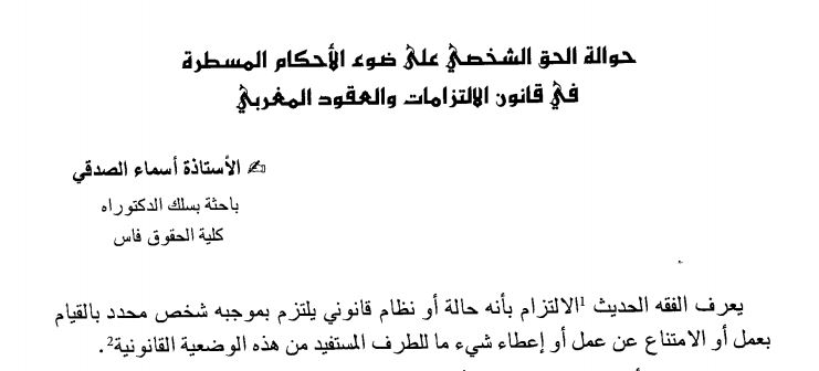 حوالة الحق الشخصي على ضوء الأحكام المسطرة في قانون الالتزامات والعقود المغربي مدونة القانون المغربي