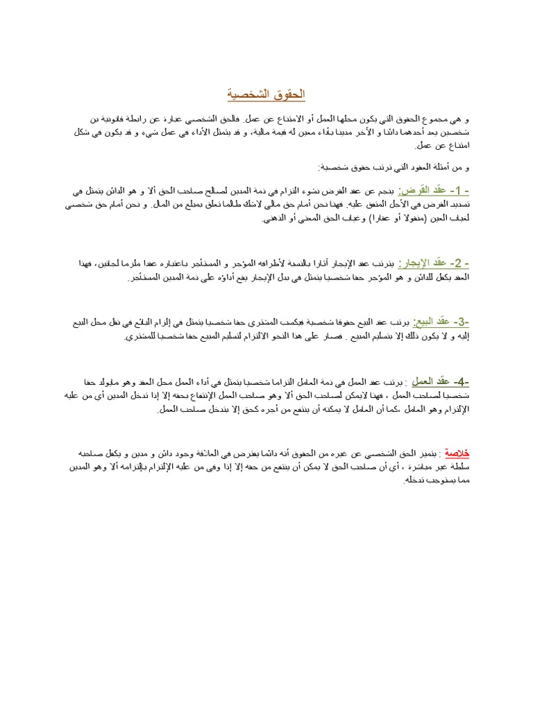 بحث حول الحقوق الشخصية والحقوق العينية موقع الدراسة الجزائري