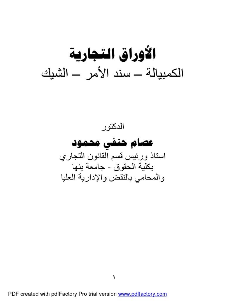الأوراق التجارية الكمبیالة سند الأمر الشیك