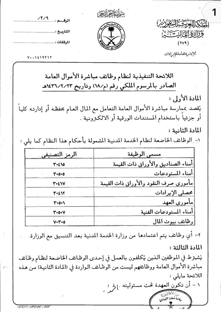 قـرار Qarar V Twitter يصرف لمن يشغل وظيفة أمين صندوق بدل طبيعة عمل بنسبة 20 من راتب الدرجة الأولى في المرتبة والمستند مرفق من اللائحة وهي من وظائف مباشرة الأموال العامة التي يصرف