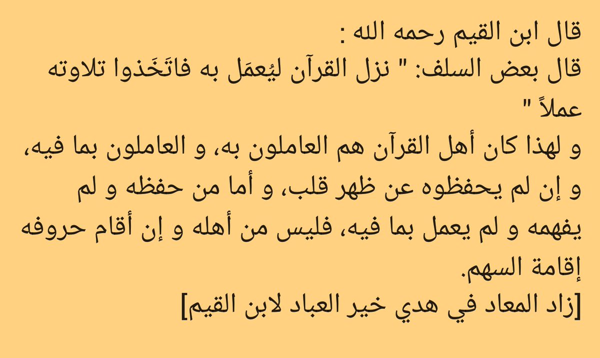 المقتطفات الس ن ي ة Pa Twitter بيان أهمية تدبر القرآن و فهمه و العمل به و أنه لا يكتفى بتلاوته أو حفظه ابن القيم و ابن قتيبة و بعض أئمة السلف Https T Co Ea5iuacjc3