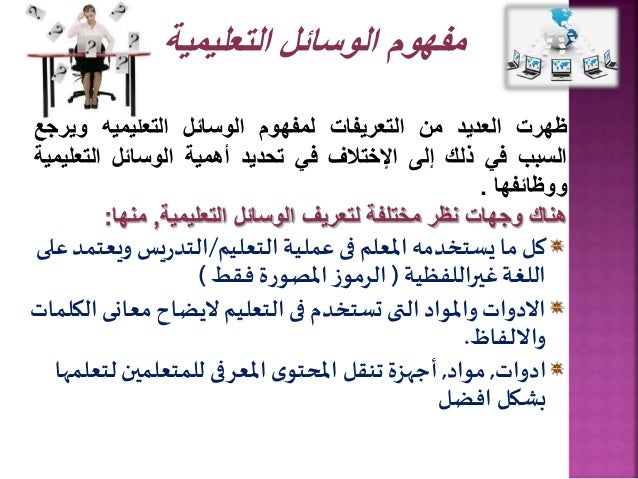 الوسائل التعليمية أهميتها أنواعها معايير اختيارها مراحلها