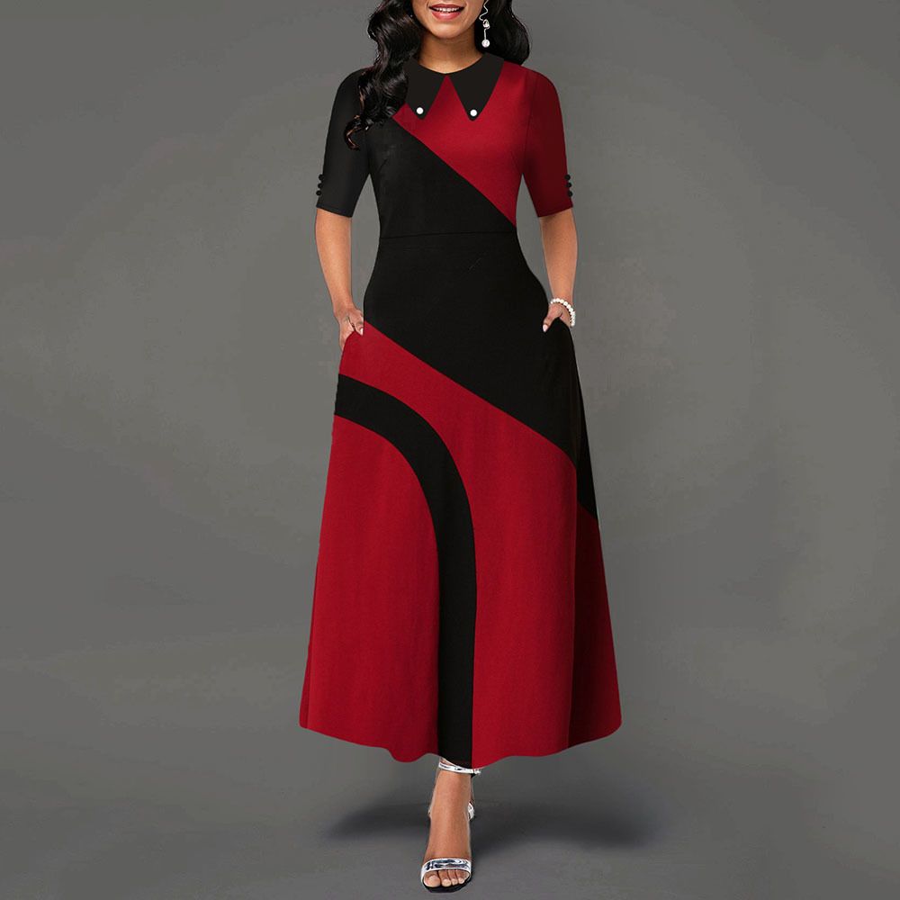 خط كتلة اللون مكتب اللباس الأنيق المرأة بيتر بان طوق نصف كم الأفريقي العمل السيدات ملابس فستان ماكسي لونغ أنثى الخريف 2021 من Weitaotao 387 62ر س موبايل Dhgate