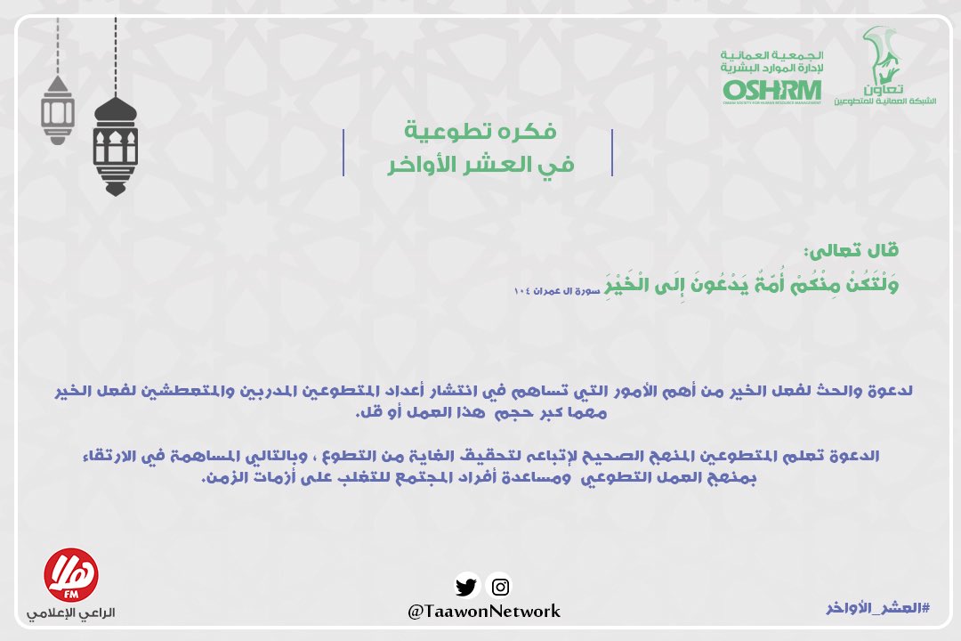شبكة تعاون בטוויטר اتبع المنهج الصحيح للعمل التطوعي لتحقيق معنى التطوع فكرة تطوعية في العشر الاواخر من رمضان الراعي الإعلامي Halafmradio Https T Co Hafgtfdq2s