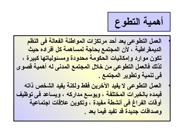 أهمية العمل التطوعي في ترسيخ الانتماء بالدين وتنمية روح المواطنه