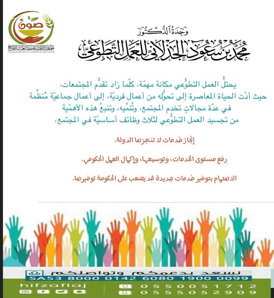 أهمية العمل التطوعي سطور