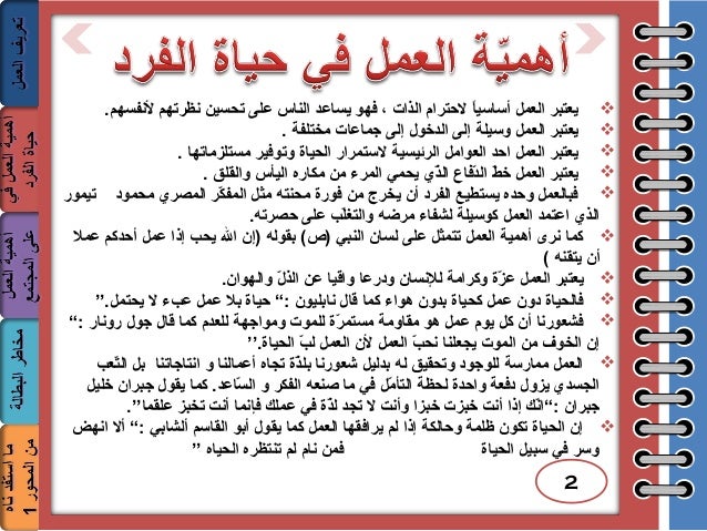 أهمية العمل في حياة الفرد والمجتمع موضوع