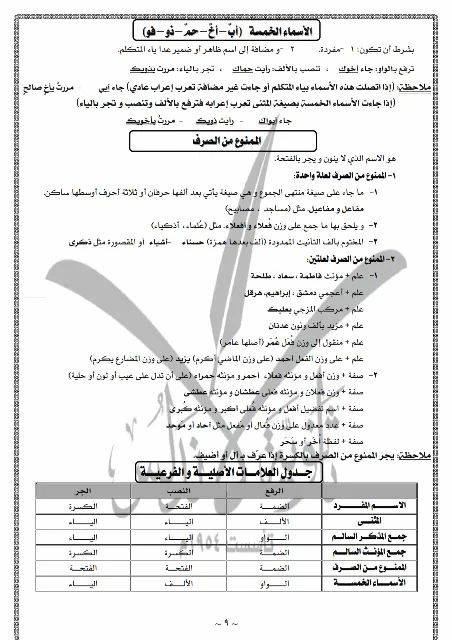 شرح وحل درس الممنوع من الصرف في اللغة العربية للصف التاسع الفصل الاول