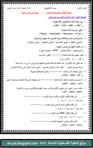 ملزمة إثرائية في الوحدة الثالثة الوسائط المتعددة للصف الحادي عشر أدبي الفصل الثاني المكتبة الفلسطينية الشاملة