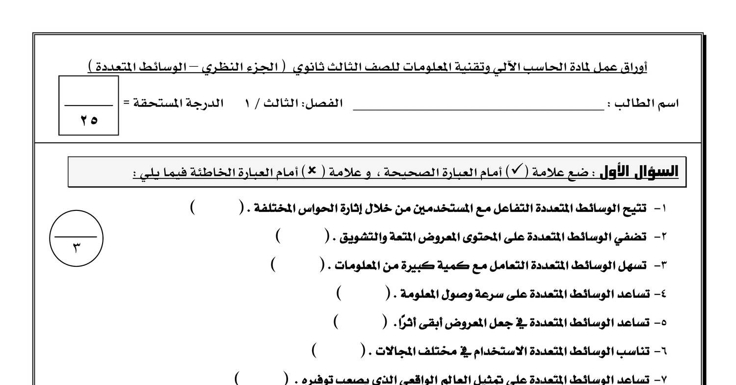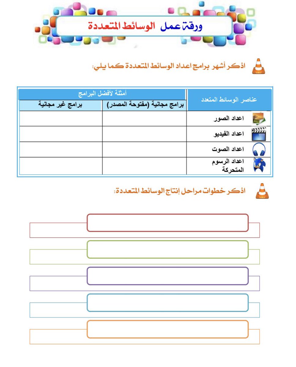 أ سارة On Twitter ورقة عمل ثالث ثانوي الوحدة الأولى الوسائط المتعددة