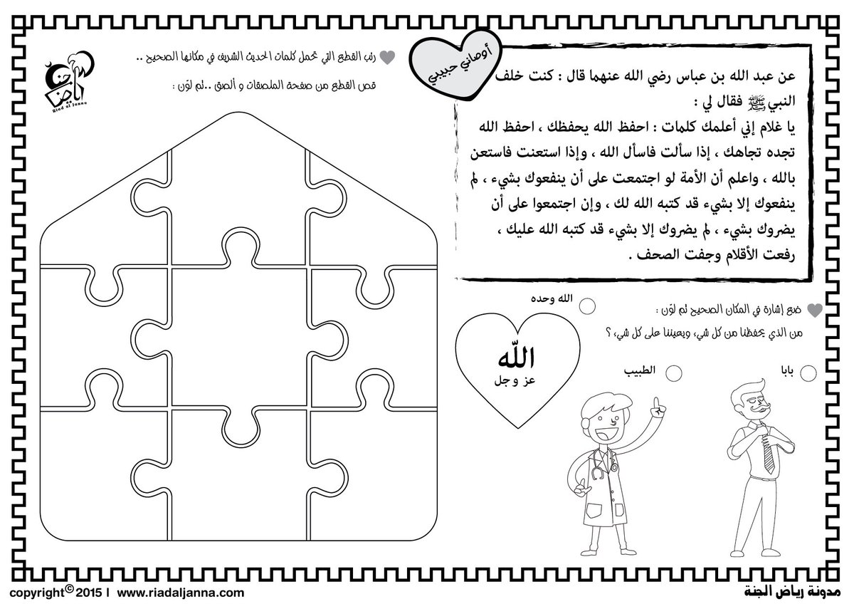 أوراق عمل إسلامي ة للأطفال رياض الجنة