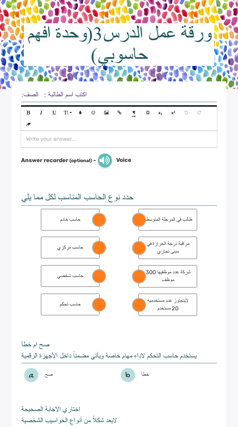 ورقة عمل اشغل حاسوبي Worksheet