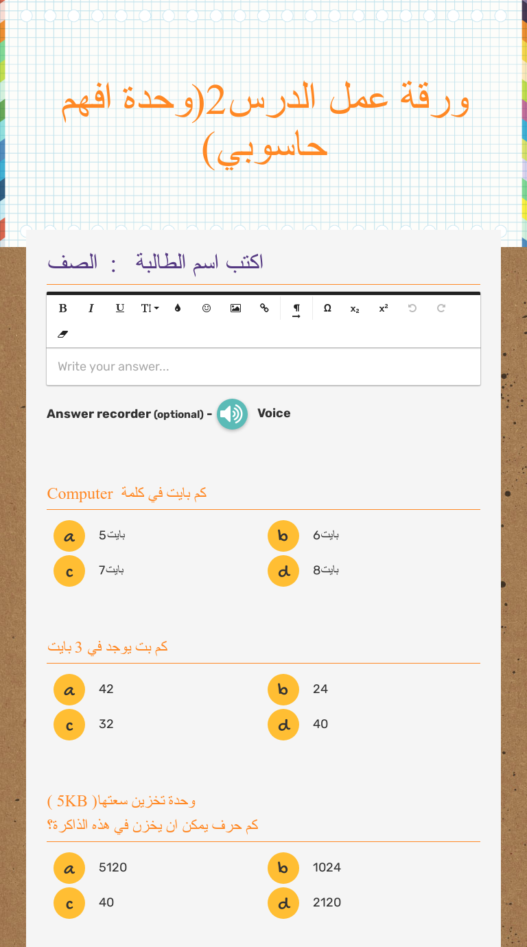 ورقة عمل الدرس2 وحدة افهم حاسوبي Interactive Worksheet By Rabab Al Rasassi Wizer Me
