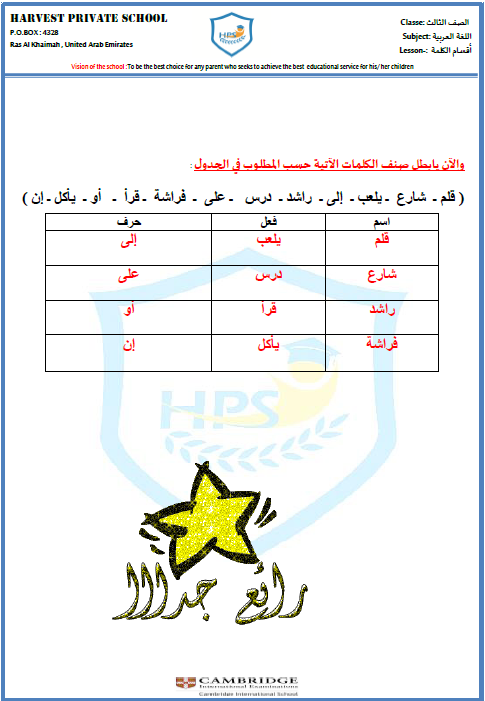 أقسام الكلام في اللغة العربية ورقة عمل أنا أتعلم عربي