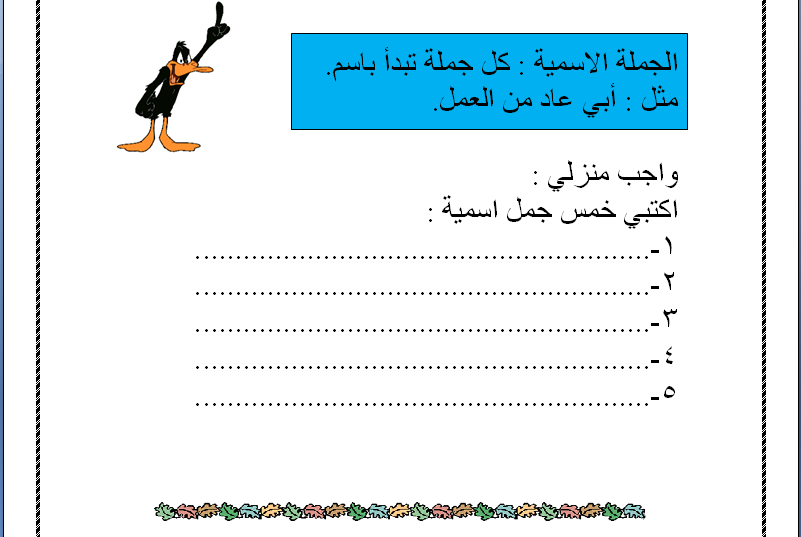 نموذج Word أوراق عمل شرح وتدريبات أقسام الكلام والجملة الاسمية لمادة اللغة العربية للصف الخامس الفصل الأول منتديات صقر الجنوب