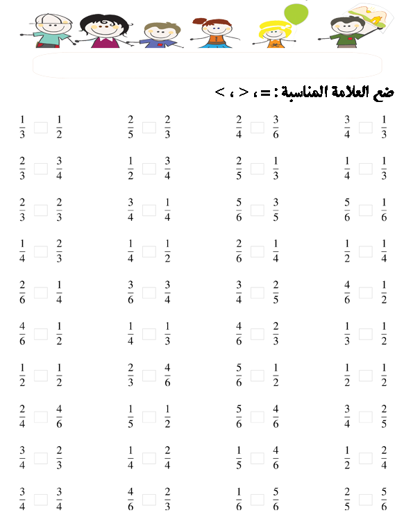 لبيب و لبيبة أوراق عمل مقارنة الأعداد و الكسور أكبر أصغر و يساوي