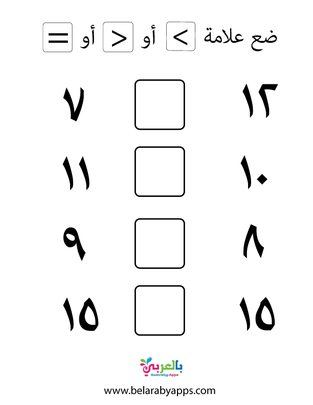 أوراق عمل مصورة مقارنة الأعداد اكبر واصغر للاطفال بالعربي نتعلم