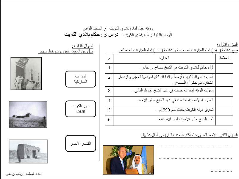 اوراق عمل اجتماعيات الصف الخامس وحدة نشأة بلادي الكويت 2019 2020 مدرستي الكويتية