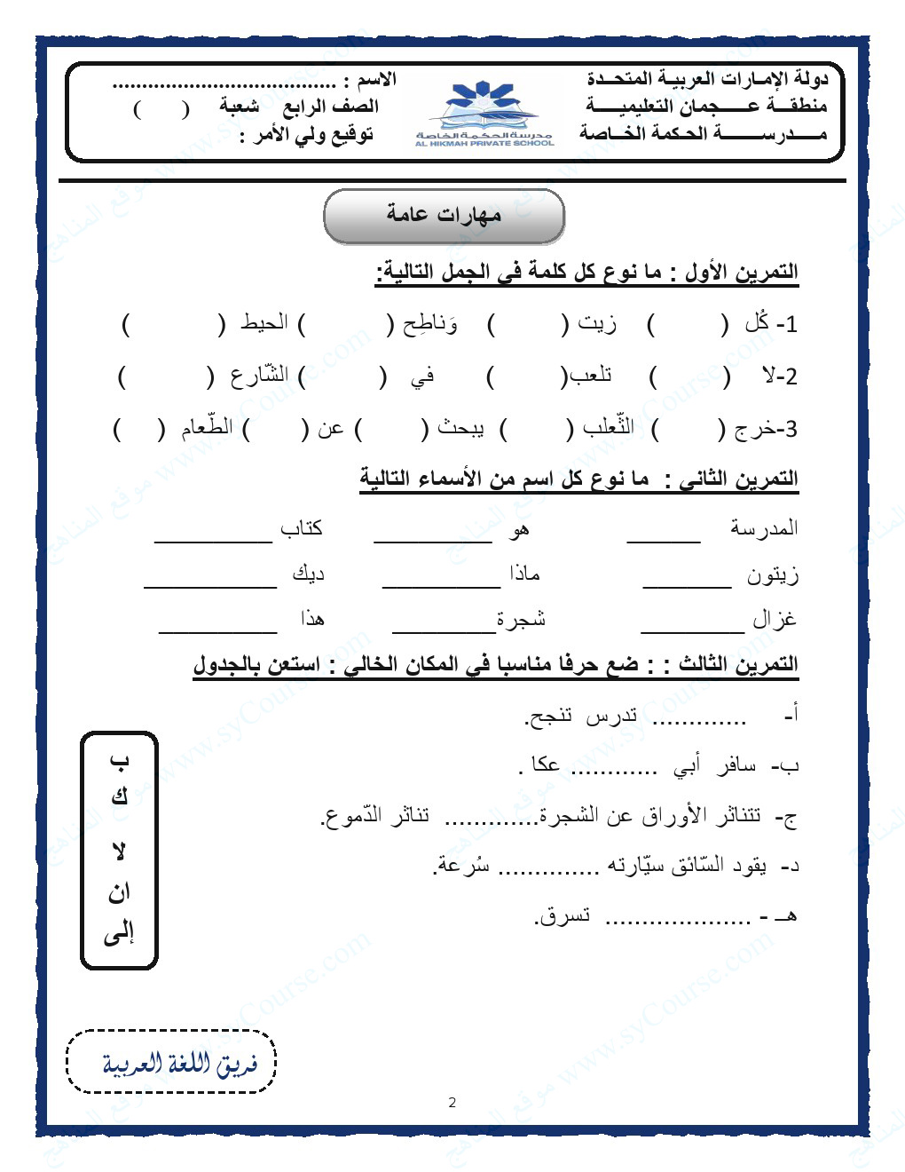 أوراق عمل لجميع مهارات ودروس اللغة العربية الصف الرابع الفصل الثالث 2016 2017 م