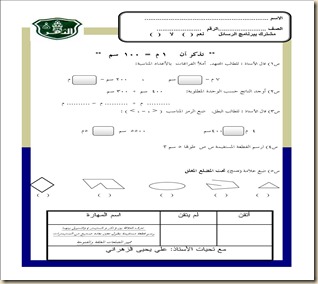 الرياضيات للأستاذ علي الزهراني ورقة عمل وحدات الطول والقطع المستقيمة والمضلعات
