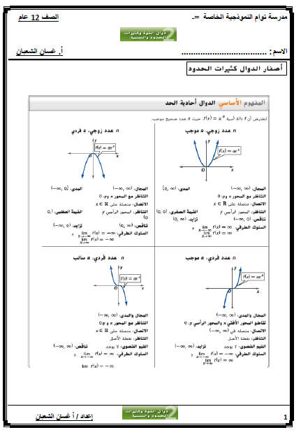 اوراق عمل الوحدة الثانية كثيرات الحدود والدوال النسبية لمادة الرياضيات الصف الثاني عشر الفصل الاول منتديات صقر الجنوب